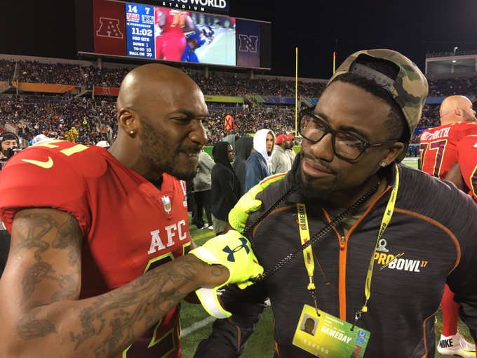 The Raiders punter posed with Chiefs cornerback Aqib Talib at the Pro Bowl in a send-up to Talib pulling the gold chain off Raiders wide receiver Michael Crabtree mid-game.